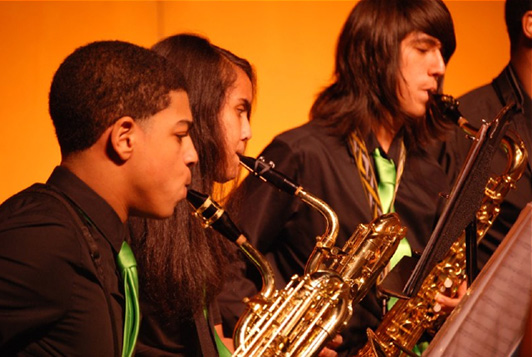 An extracurricular ensemble in which saxophone players form quartets or saxophone choir to play a variety of repertoire. Students are given the opportunity to become better saxophonists individually and as an ensemble. Performances include recitals, chamber music concerts, and various community events. This group is open to any saxophonist who wishes to participate. No audition is required.
